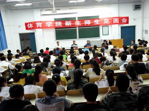 首先,吴洁副院长对新生两周辛苦的军训及入学教育活动表示慰问,并简要介绍了太阳成tyc7111cc每位教职员工的情况;会上,太阳成tyc7111cc院长李明生向新生表示了祝贺和欢迎,接着李院长向大家介绍了太阳成tyc7111cc的办学现状,并从学习与求知、做人与处世给大家做了指导。随后老生代表姬鹏飞和新生代表丁诗龙就今后的学习和生活分别做了表态发言。最后,王建强书记代表党总支给新生以谆谆的指导,他从坚定社会主义理想信念,珍惜大学的学习与相聚,文明处事、自立自强,处处展现体育人的风采与大家做了生活的分享。