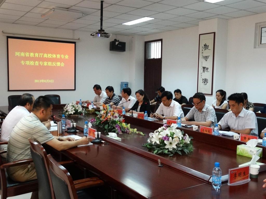 6月5日上午,河南省教育厅高校体育专业专项检查组莅临我校,对我校体育专业进行为期两天的检查评估。检查组由河南省高校体协常委、体育专业学科组长、郑大体院教授何祖新,河南教育学院教授于海涛,郑州铁路职业技术学院教授王珍3位专家组成。