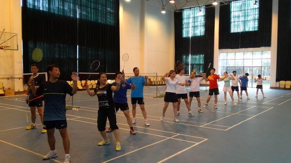 在羽毛球训练馆,邓光明先生结合自己多年的羽毛球教练经验,为大家讲解了羽毛球的动作要领,关键动作还亲身示范,邓先生标准的示范,矫健的身姿,赢得了听众的的阵阵掌声,更激发了大家练球的热情;邓先生根据自己多年从事羽毛球赛事组织的经验,还为大家讲解了羽毛球运动开展的规律、经验和注意事项。随后,邓光明先生还与大家切磋交流了球技,完美的的展示了羽毛球运动的活力与魅力。