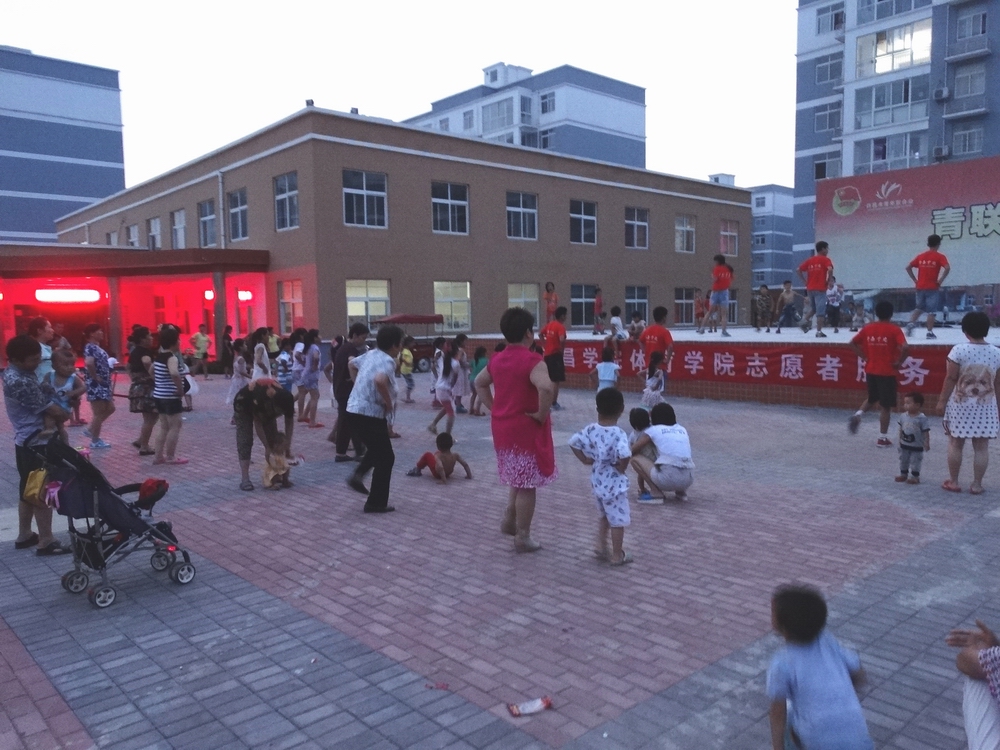 志愿者们来到社区,熟悉社区的环境,志愿者打扫了社区活动办公室,并与社区居民交流,了解居民健身的需求,和居民的健身情况,完善了前期的活动方案。晚上,志愿者进行了健美操的宣传和传授,居民积极配合,学习热情高涨。